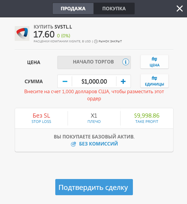 Шаг 4. Покупка акций Северсталь (на примере eToro)